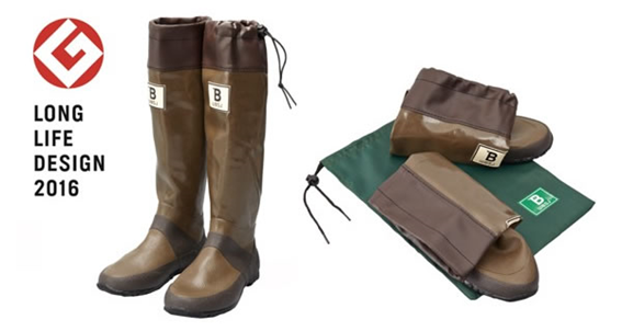 この長靴、履くと膝下まであるのに、なんと収納時にはスニーカー程度の大きさで持ち運ぶことができるのです。携帯用の巾着も付属しています。もともと「田植え用」の長靴をベースに「バードウォッチング用」として開発されたものですが、ここ数年、野外フェスに出かける人たちを中心に静かなブームとなっています。男女共用です。