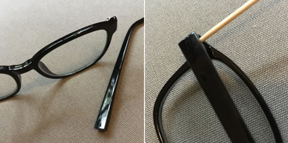 ぱっと見、つまようじだなんて全然分かりません。とりあえず、これで1日は凌ぐことができます。眼鏡はもちろん、旅行先でサングラスのネジを失くしたときにも使えますよ。