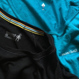 個人的な一押しはSmartwoolですが、お値段もそこそこ張ります。そんな中、モンベルの「スーパーメリノウール(薄手)」は、比較的リーズナブル。こちらのレディースは襟ぐりが深めなので、仕事着の下に着てもはみ出しません。