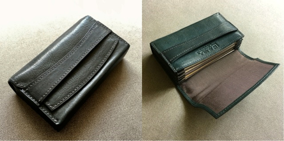 ネットの画像では、漢字のロゴが若干武骨な印象でしたが、実物を手にしてみたらそうでもありませんでした。裏地がついているので、名刺に色移りしないのがいいですね。使い込むほどに味が出そうな革で、愛着が湧いてきます。