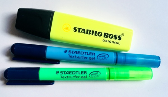 難しい専門用語は「記憶から引き出す時に脳ミソにかかる負荷」を抑えつつ「ぱっと口に出せるよう」単語のそばに訳語をあらかじめ書き込んでおきます。ただ、資料の背景(下地の色)が黒や紺、深緑などの濃い色だと、こんな風に普通のペンで書いても文字を読むことができません。