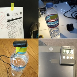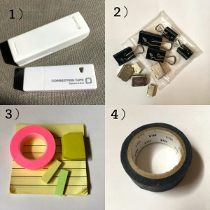私は写真右上のように自分のペットボトルの目印に貼ったりもします。会議の主催者や通訳エージェントが通訳者用にお水を用意してくれるのですが、席替えを繰り返していると、誰のだか見分けがつかなくなってしまうからです(ちなみに、ペットボトルの目印には可愛いヘアゴムやワイングラスマーカーなど、女子力全開(!)なグッズを使っている方も男女問わずけっこういらっしゃいます)。