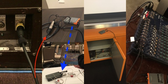 パナ送信機は、なんとPA操作卓や会場の音響システム、アンプなどに直接つないで音声を飛ばすことができます。高性能のマイクで拾うよりもさらに音質がUP。実質的にはブースの音声と遜色ないレベルが期待できます。