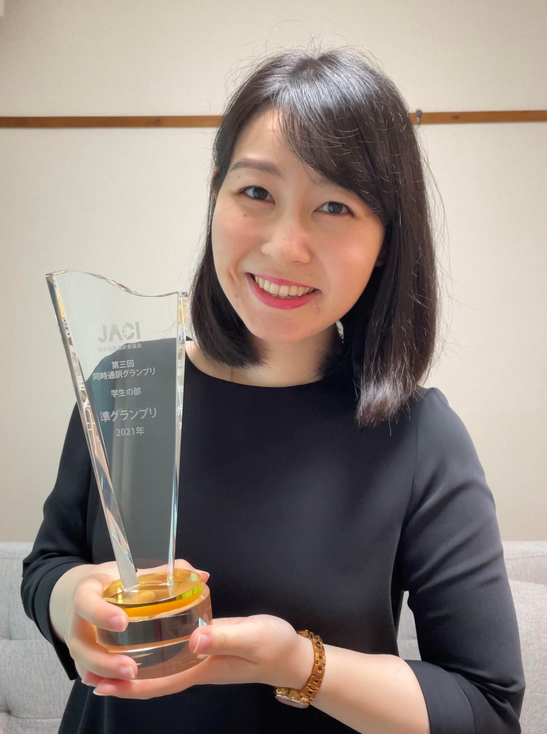 5月に大学院を卒業し、6月からは東京で社内通訳として勤務しています。今回の受賞をまた新たなスタート地点として、さらに成長していけるよう精進してまいります。