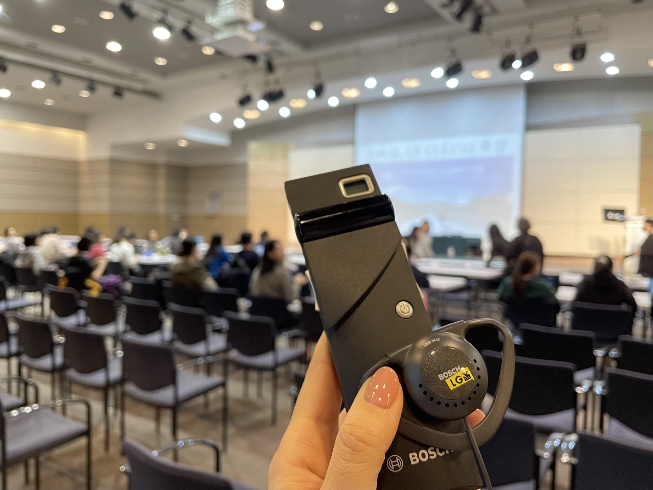 学内で行われた特別フォーラムにて。フランス語の講演を2年生が韓国語へと同時通訳する内容を、レシーバーを通して聞くことができました。
