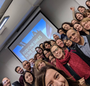 通訳者を取り巻く労働環境について学ぶこのモジュールでは、学期の中盤に入り、実際に仕事での通訳経験のある学生のCVを回し読みしてどういうところが良いか、どういったところが改善できるかなどグループディスカッションをしたり、LinkedInのようなソーシャルメディアの活用についてプレゼンテーションを聞いたりしました。また、通訳者の行動規範であるCode of Conductについても学びました。そして、これまでこの会議通訳のコース全体で、前期に2回グループプレゼンテーションがありましたが、後期にも1回グループプレゼンテーションがあり、それがCode of Conductについて1つテーマを決めてリサーチを行うというものなのです。このモジュールは上記の2つのモジュールと異なり、通訳のテストはなく、このグループプレゼンテーションと実際に自分が通訳を現場で行ったりプロの通訳者の現場での通訳を見学したりといった機会を学期中に持ち、それに関するエッセイでの評価となります。