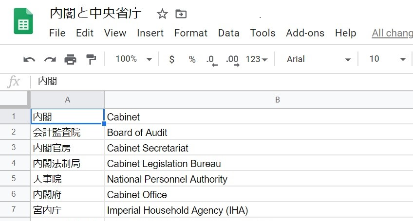 用語が出揃ったら Google スプレッドシートに用語と訳語を貼り付けましょう。これで用語集の出来上がり!