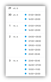 | ↑ プライマリタイムゾーンのスケジュール | ↑セカンダリタイムゾーンに切り替えたスケジュール |