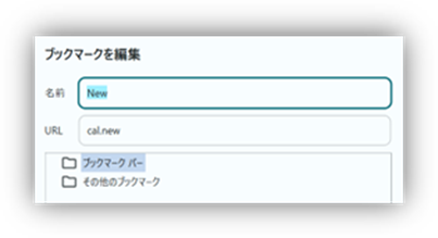 ブックマークを作るには該当画面が開いた時に星アイコンからブックマークするか、もしくは以下のように cal.new を登録して下さい。